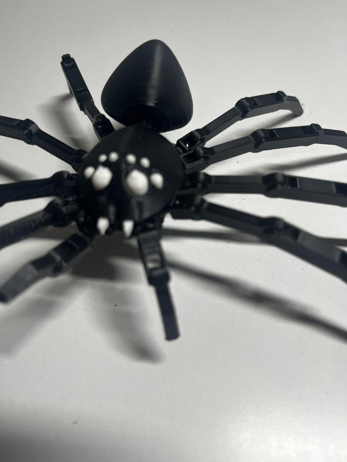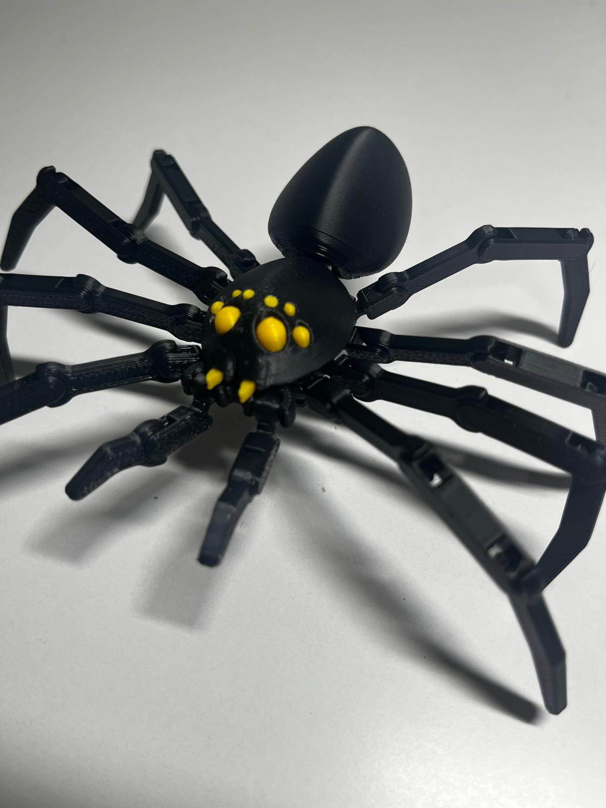 3D yazıcıdan ürettiğimiz bu örümcek figürü, siyah gövdesi ve beyaz–sarı göz detaylarıyla tam bir karakter ürünü.