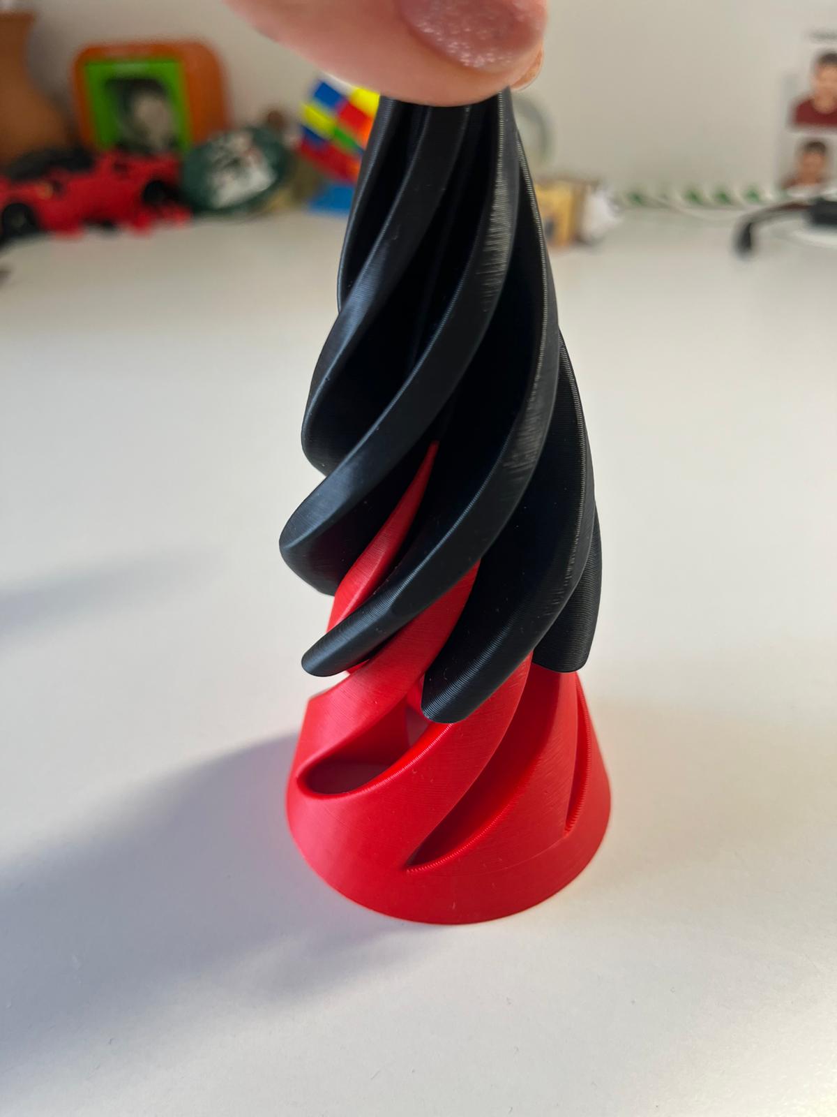 3D yazıcı ile üretilmiş, iç içe geçen iki parçalı özel tasarım. Elinizde döndürün, çevirin, sökün-takın…Ritmik hareketi zihni sakinleştirir, dikkati toplar.